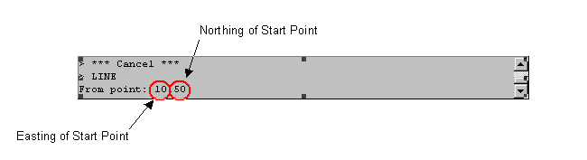You will then be prompted for the first point of the line. You can simply pick a location on your screen by pressing the left mouse button or you can type in the location in an Easting, Northing format :