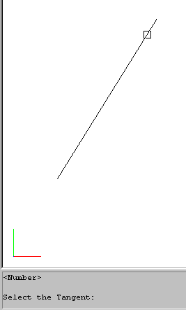 We have the option of "flipping" back and forth between the Lines and Curves Dialogs by selecting the Curve Calcs or Line Calcs buttons respectively. Try it out. - In this case, since we already have the tangent line (From Step #5 in Draw Lines), we will use the CAD Curves Dialog to enter the appropriate Curve information. In this case, we want to enter a Clockwise Curve with Radius 100 feet and a length of 85 feet. To do this select on the Tangent Button in the CAD Curves Dialog. This will draw a curve tangent to the existing line using the information we will input. You will be prompted to select the tangent line. Make sure you select the line near the end where you want to draw the curve. This image below shows where I picked the line.