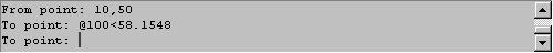 e) For those of you used to AutoSketch, we also support the "distance"< option. You can use the mouse to define the direction of the line and type 100< at the command prompt to enter the distance.
