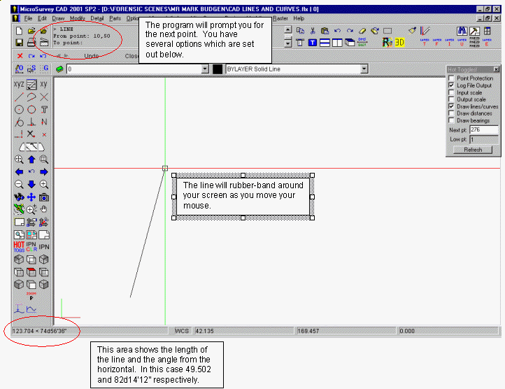 - Again, you should press the right mouse button, Esc key or Enter on the keyboard to bring back the CAD Lines Dialog. You can now enter the remainder of the data from above