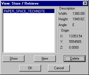 Now select the NView button as shown above. This will allow us to place our Named View (PAPER_SPACE_TECHNOTE) into the Viewport (See The View Manager above). The following dialog box will appear.