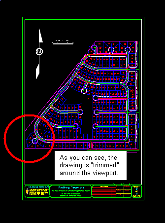Once the viewport has been created, MicroSurvey will automatically bring the extents of your drawing (In Model Space) into the viewport. The figure below illustrates this.