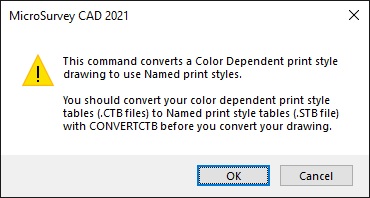 It's unusual, but sometimes users need to convert from *.ctb to *.stb. Use the same CONVERTPSTYLES command, but when converting your drawing, you will be prompted to select an .stb file. You may use any .stb file after, this does not limit which file can be used for the entire drawing, as you will be able to select any .stb file from the dropdown under Print. However, you may come across the following warning message when doing so: