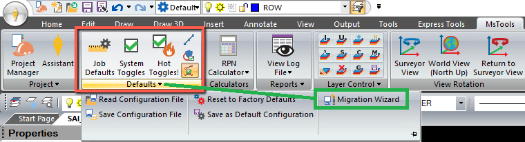 • Find the Migration Wizard on the MsTools Ribbon "Defaults" drop-down as shown: