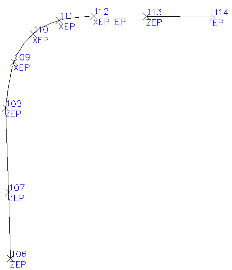 Starting at point 106, the description of EP is placed on each point. The prefix of Z is added to draw straight lines. The prefix of X draws curved polylines, and no prefix ends the line for that description.