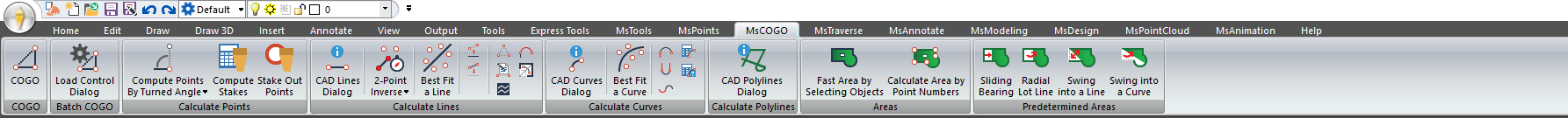We have a routine called Right-of-Way that will take a traverse line and allow you to offset it by any amount on either side of the traverse line. It asks for opening and closing intersecting directions and will generate all the linework and label it and calculate an area as well. This routine is available in the "Calculate lines" group of the MsCOGO Menu.
