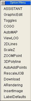 The next segment is a list of commands found on the Option Bar (or Option Menu ) when no command is running. The option bar is found at the top of the drawing screen below the command prompt area.