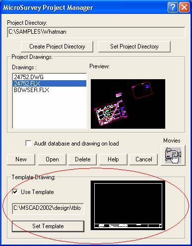 When you first start the MicroSurvey program the Project Manager is automatically brought up on screen to allow you to access your existing drawings and start new drawings.