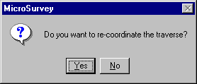 If you choose No, the download process is complete. Only the coordinates in the main body of the traverse will be displayed. All side shots will not be stored in the database. In order to do this, you must choose to recoordinate the traverse.
