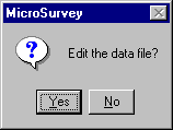 You will be asked if you want to edit the data file. If you are aware of any errors or omissions in the raw data file then you should select Yes to view and edit the file. If not, select No. If you are duplicating the field edits to the raw data, this is where it is done.