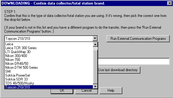 Download Topcon Data from Topcon 210/310 (Coordinate and Measurement Files)