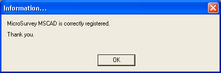 Type in your MicroSurvey Password and pick the OK button. You will be told that the program is now registered, if the password was entered correctly.