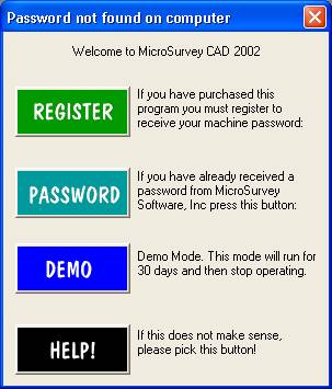Passwords, Key Numbers and Registration in MS-CAD 2002, or MicroSurvey Express 2002