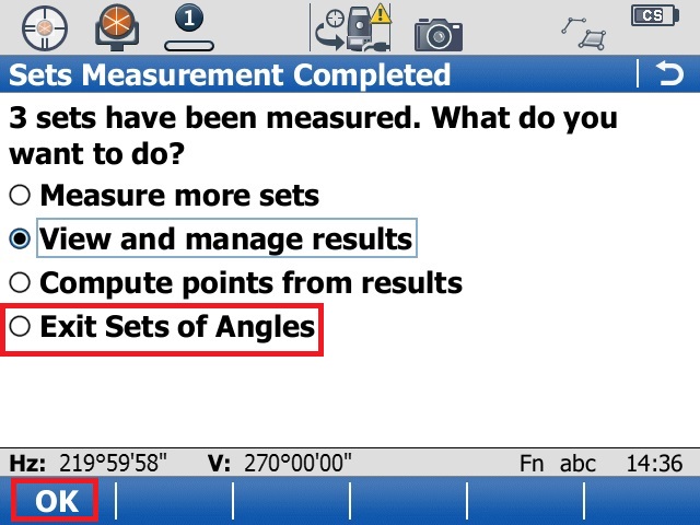 7. Finally, select “Exit Sets of Angles” and “OK”
