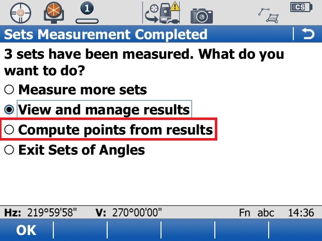2. In the “Sets Measurement Completed” screen, select “View and manage results” and "OK"